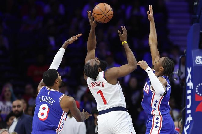 反观恩比德打打停停,影响比赛节奏,而庄神打得都比恩比德要强硬,今天庄神拿下14分18篮板!乔治回归后,依旧没有打出高效的水准。保罗乔治今天复出,完成了赛季首秀,开局连拿5分后,随后就接连打铁,全场比赛9中2,得到9分7篮板3助攻。